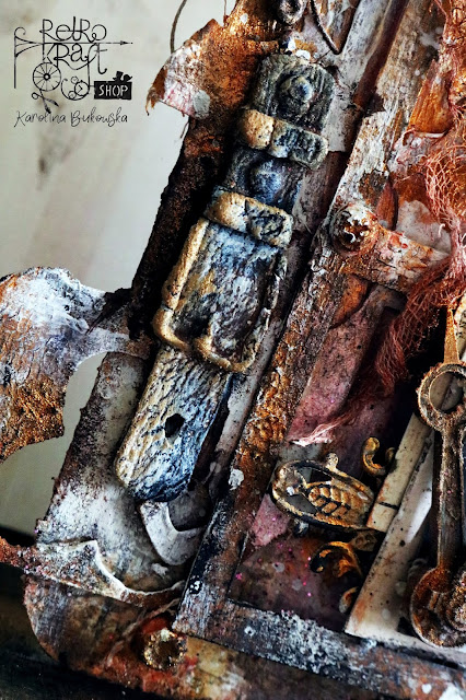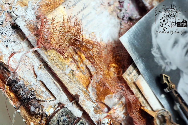 I added Cracking paste, paints and beautiful embellishments from Tim Holtz idea-ology i Mitform