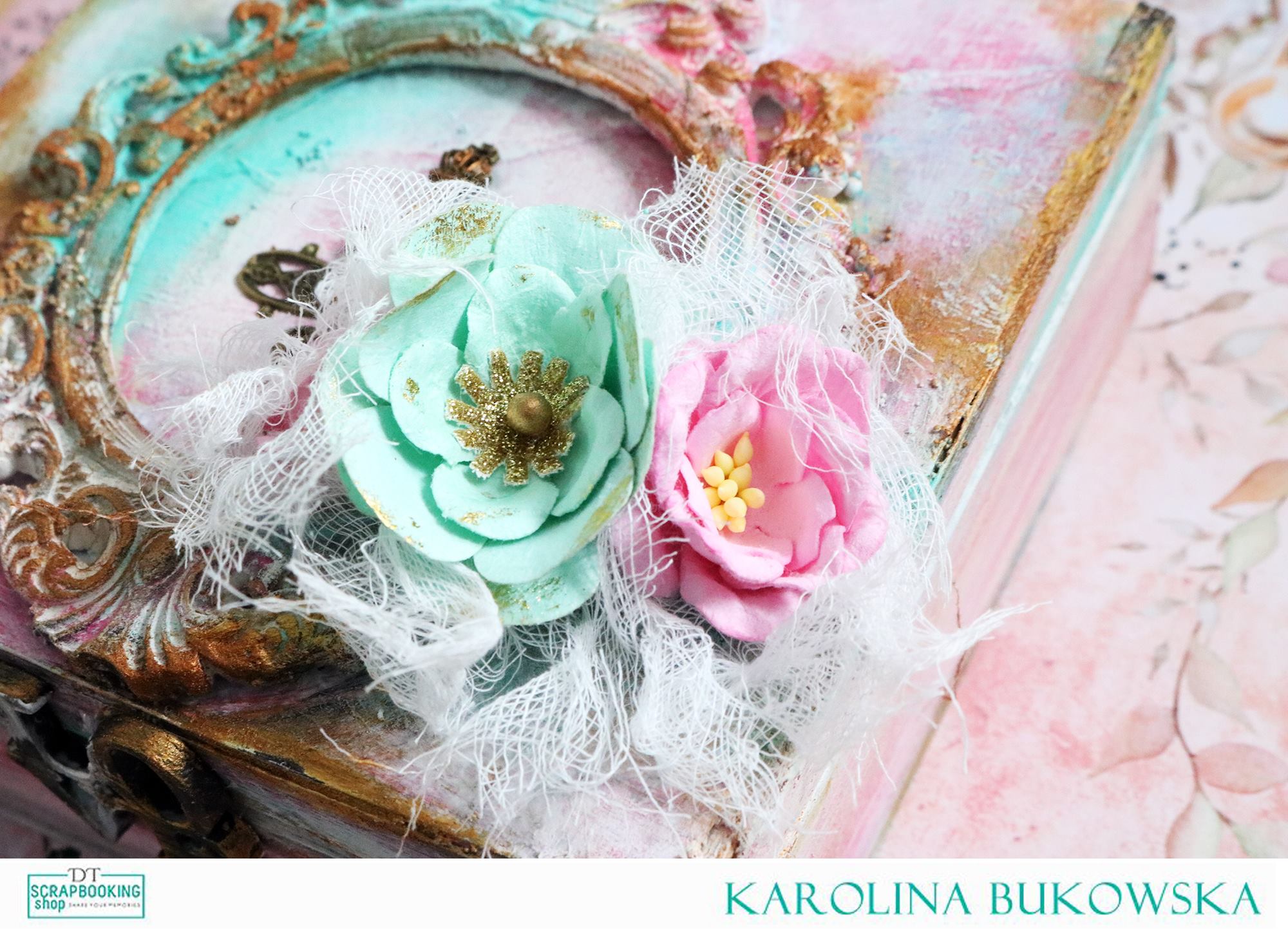Dziś wracam z farbami Impasto od Finnabair w roli głównej. Idealnie napigmentowane, gęste, dobrze kryjące i bardzo wydajne. Praca z nimi to czysta przyjemność. I pewnie dlatego sięgnęłam po nie podczas alterowania drewnianego pudełka. Kilka kwiatków, kawałek papieru, trochę pudru artystycznego od Primy i przetarcie metalicznymi farbami w kolorach złota i projekt gotowy. Zapraszam na tutorial, w nim zobaczysz cały proces tworzenia.