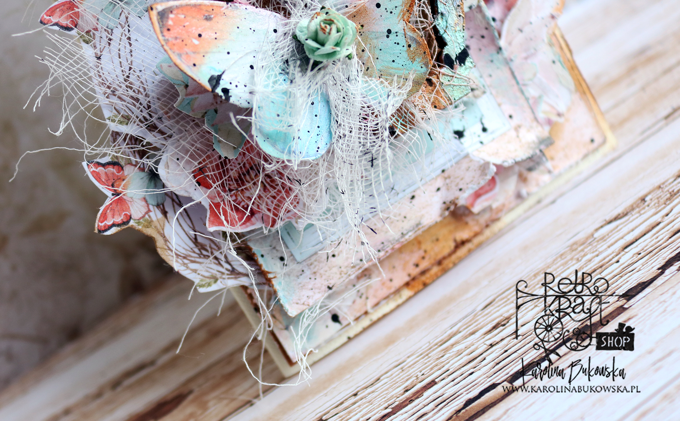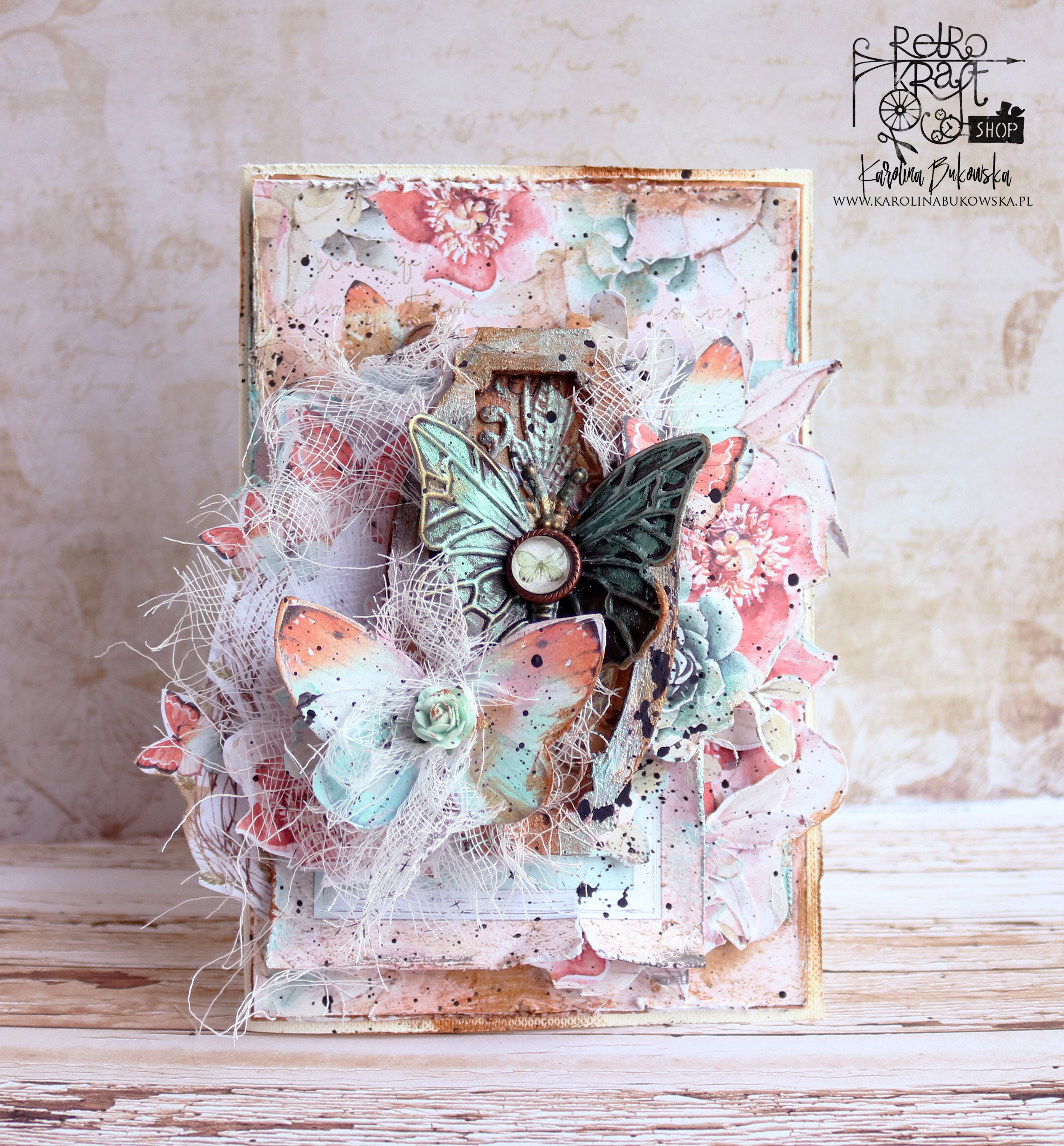 I created for you the card. A multi-layered composition created from papers and really I did not need much to create a card. Metal elements have given a unique character. I think it’s beautiful they broke the sweetness of paper.