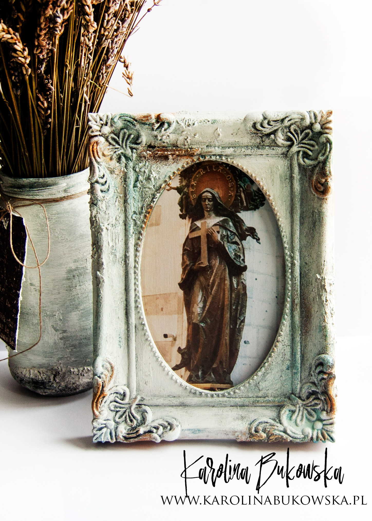 Dziś mam dla Was postarzaną ramkę również w bieli. Jest niezwykła, tak jak zdjęcie, które oprawia.