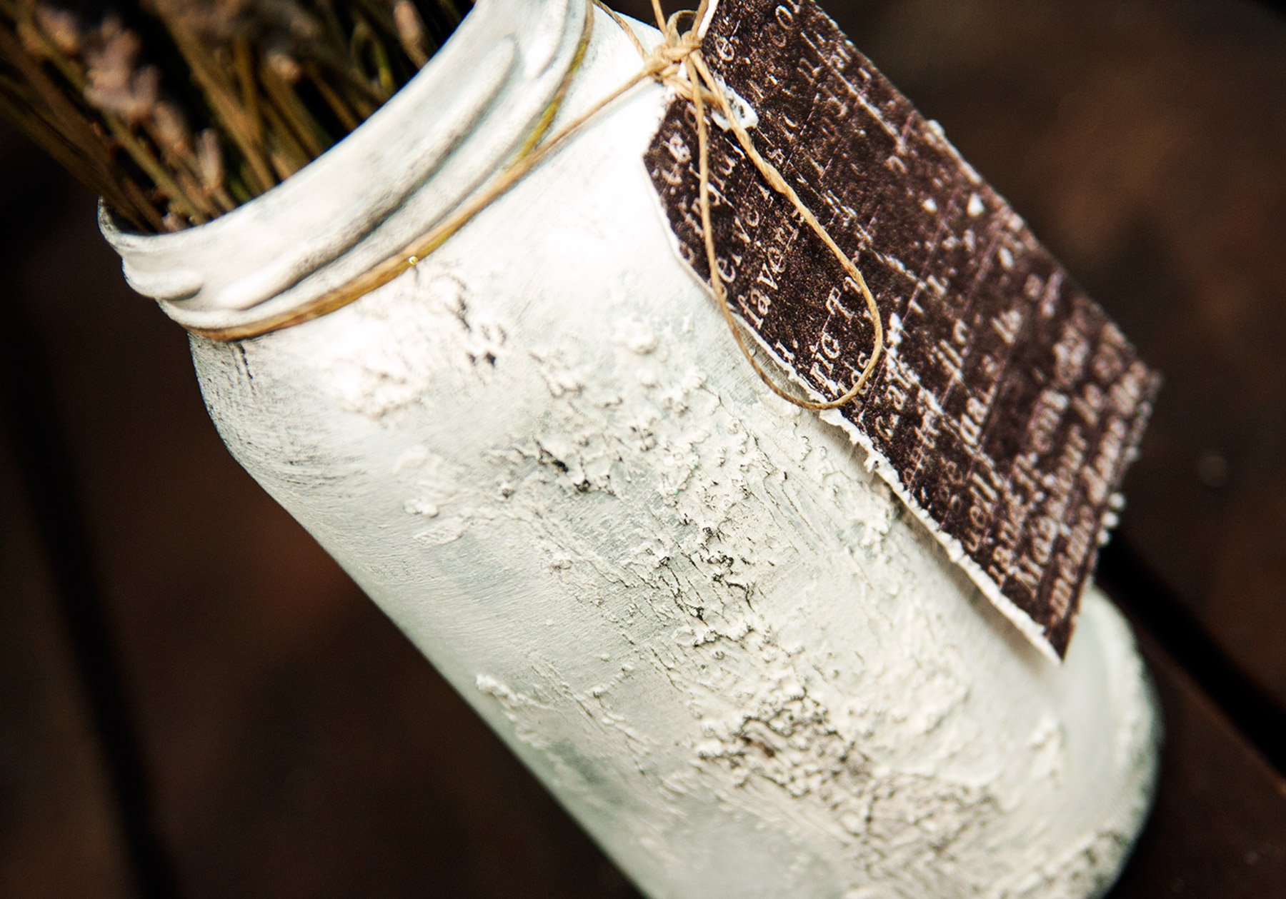 Prace rozpoczęłam od zagruntowania powierzchni słoika Gessem, które po wyschnięciu stanowi idealną bazę do rozprowadzania mediów. Dzięki gesso farba nie spływa po ściankach przedmiotu, lecz trzyma się podłoża.