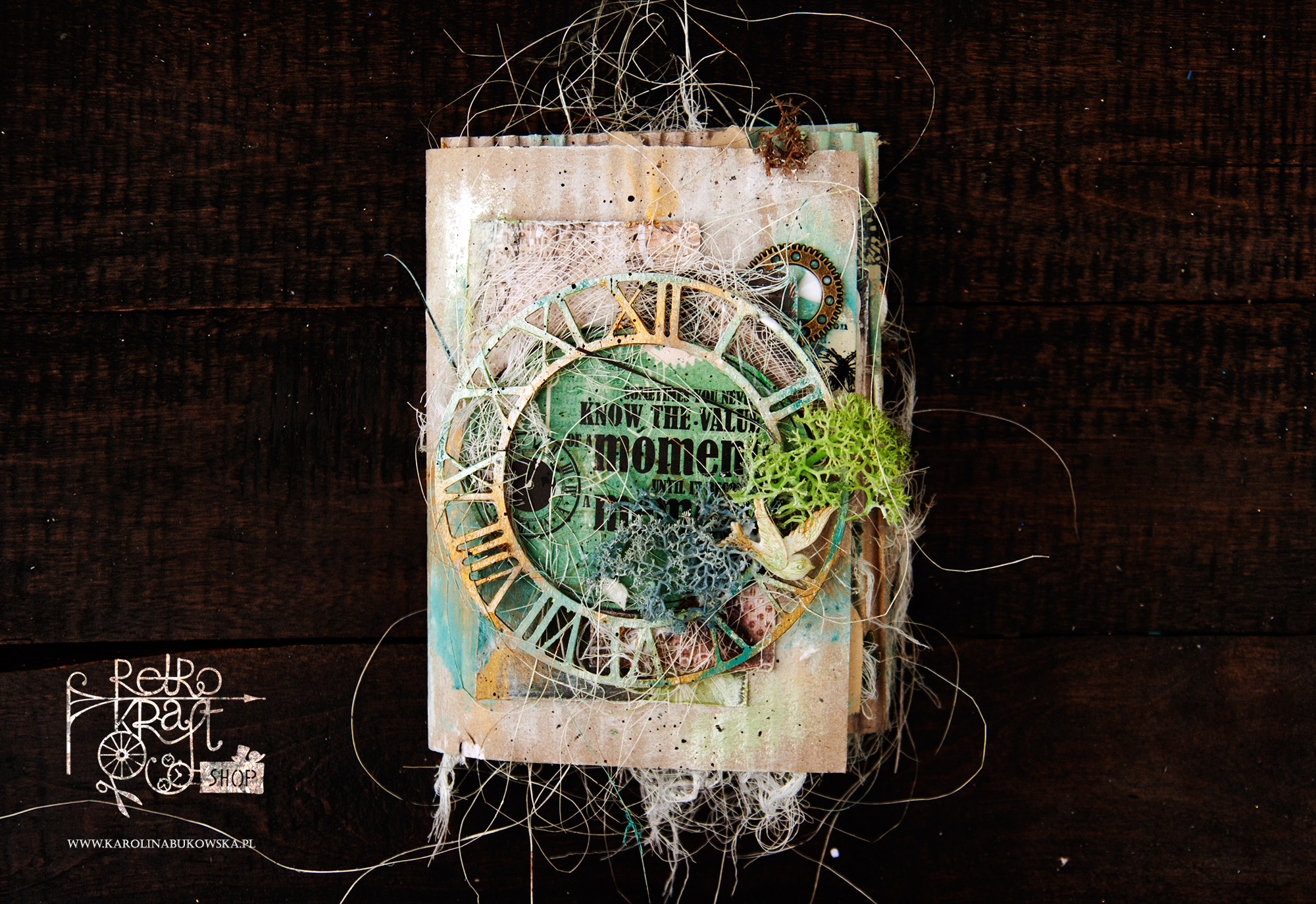 Metalowe trybiki, tekturkowy zegar, cudne papiery, to tylko niektóre elementy zestawu.