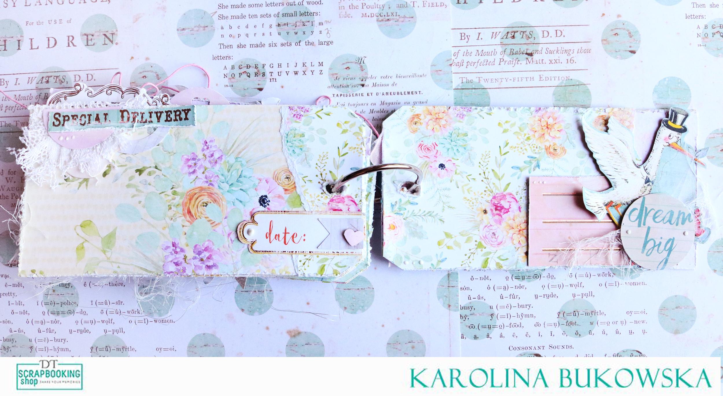 Mam nadzieje, że lubicie mini album w formie taga. Powstał on na bazie kolekcji Lovely Day – Mintay by Karola i Heaven Sent – Prima Marketing.