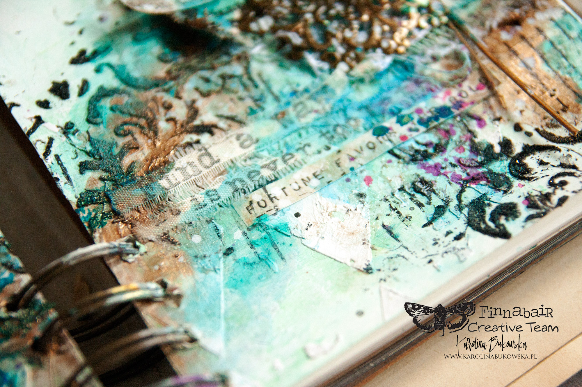 This month Finnabair design team decided to all create art journal spreads focusing on using different Finnabair’s stamps, resist canvas elements, and stencils. Just wait until you see each personality come to life! That’s the beauty of art journaling…you really can express yourself in sich a beautiful way.