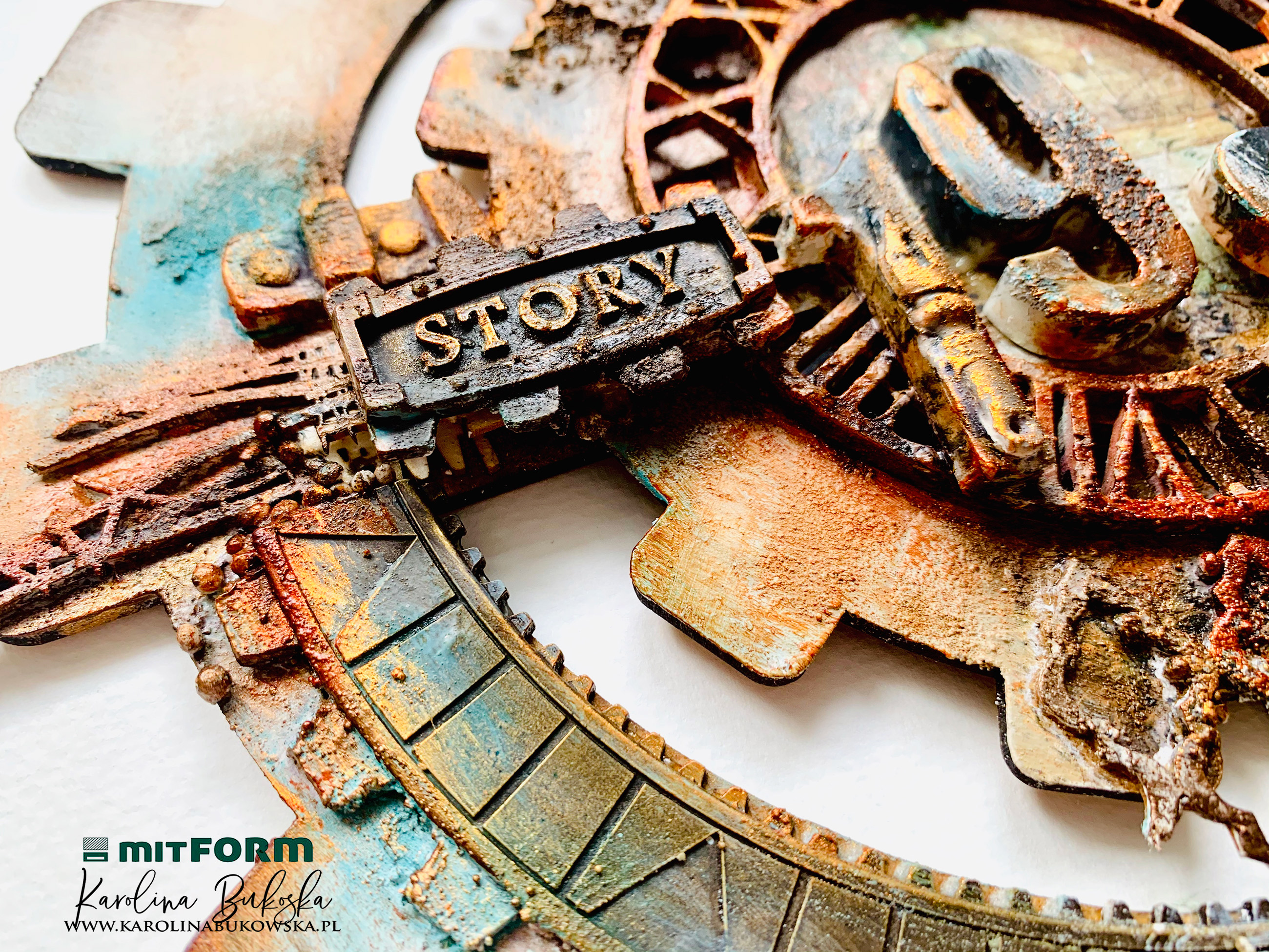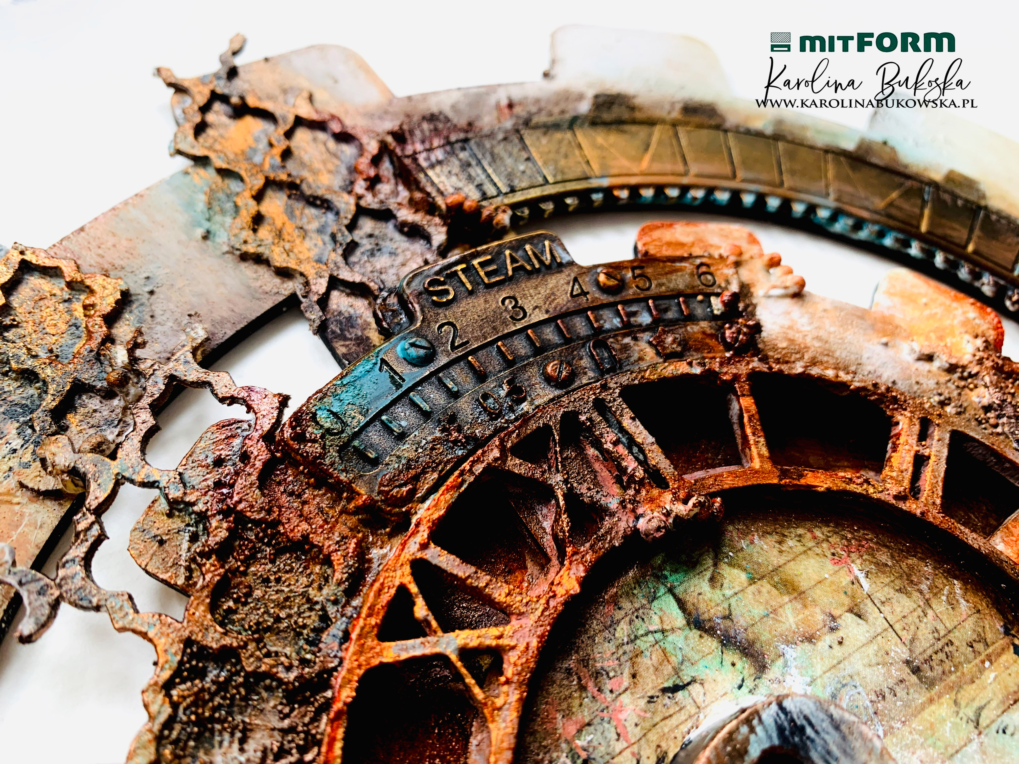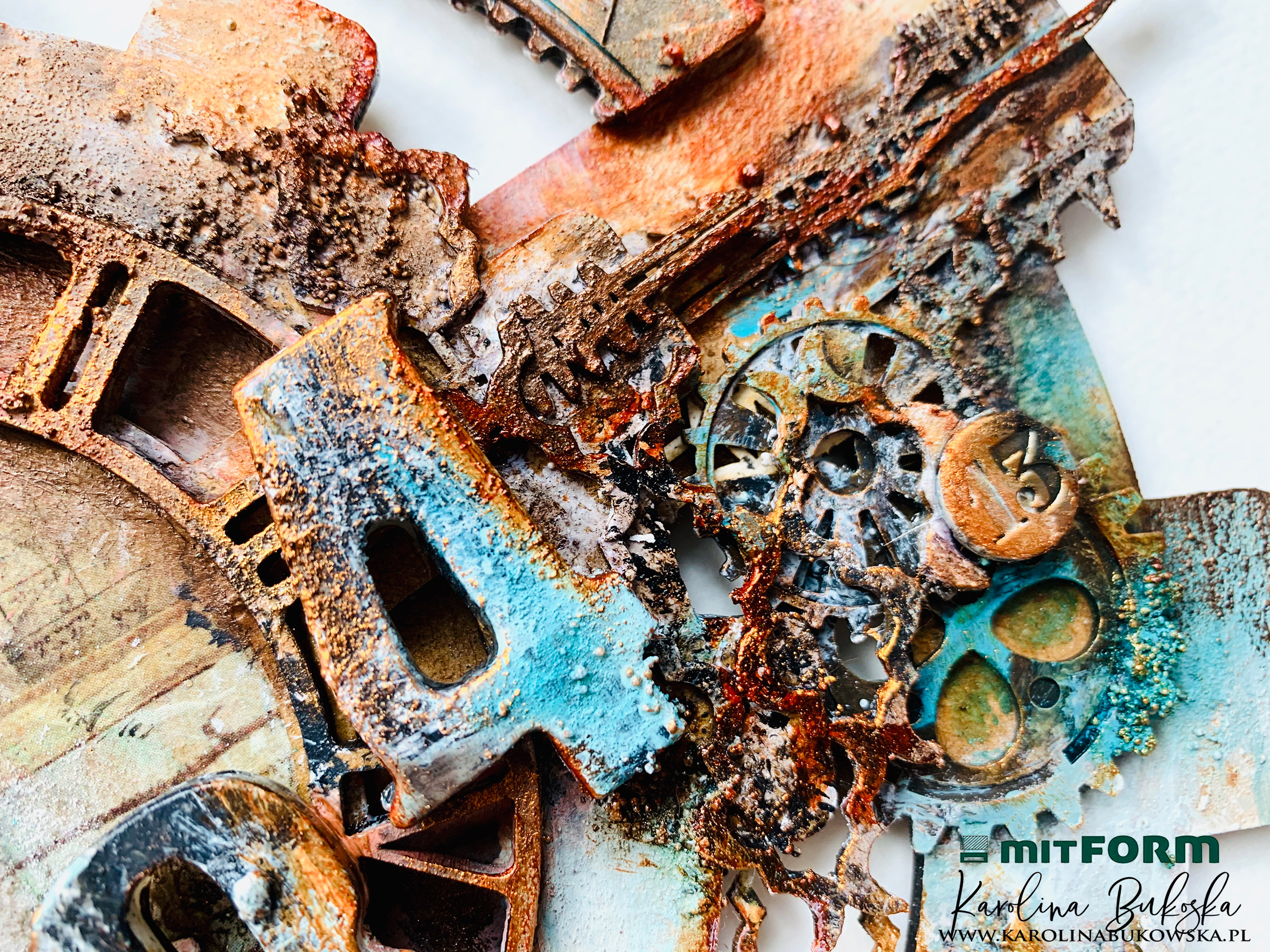 Dziś przyszłam do Was z pracą, którą stworzyłam dla MitForm z myślą o sobie i trzeba przyznać, że tworzenie jej to była czysta przyjemność. Wielowarstwowa kompozycja zdobiona metalowymi elementami oraz mediami pozwoliłam mi na chwile wytchnienia… Pomyślałam sobie, że rocznik 1984 to najlepszy rocznik