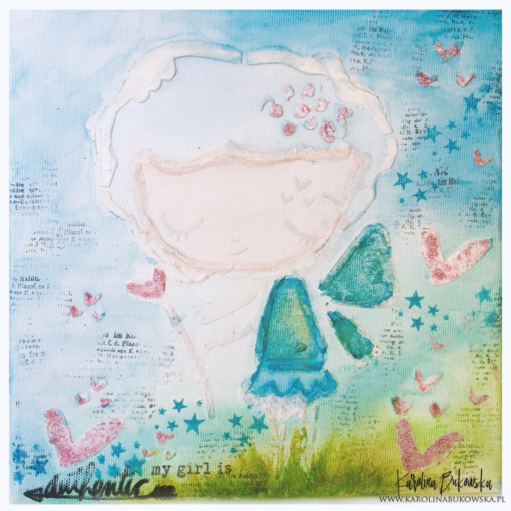 Gorgeous canvas Karolina! the girl is so pretty and I love the background, so soft and dreamy, very beautiful