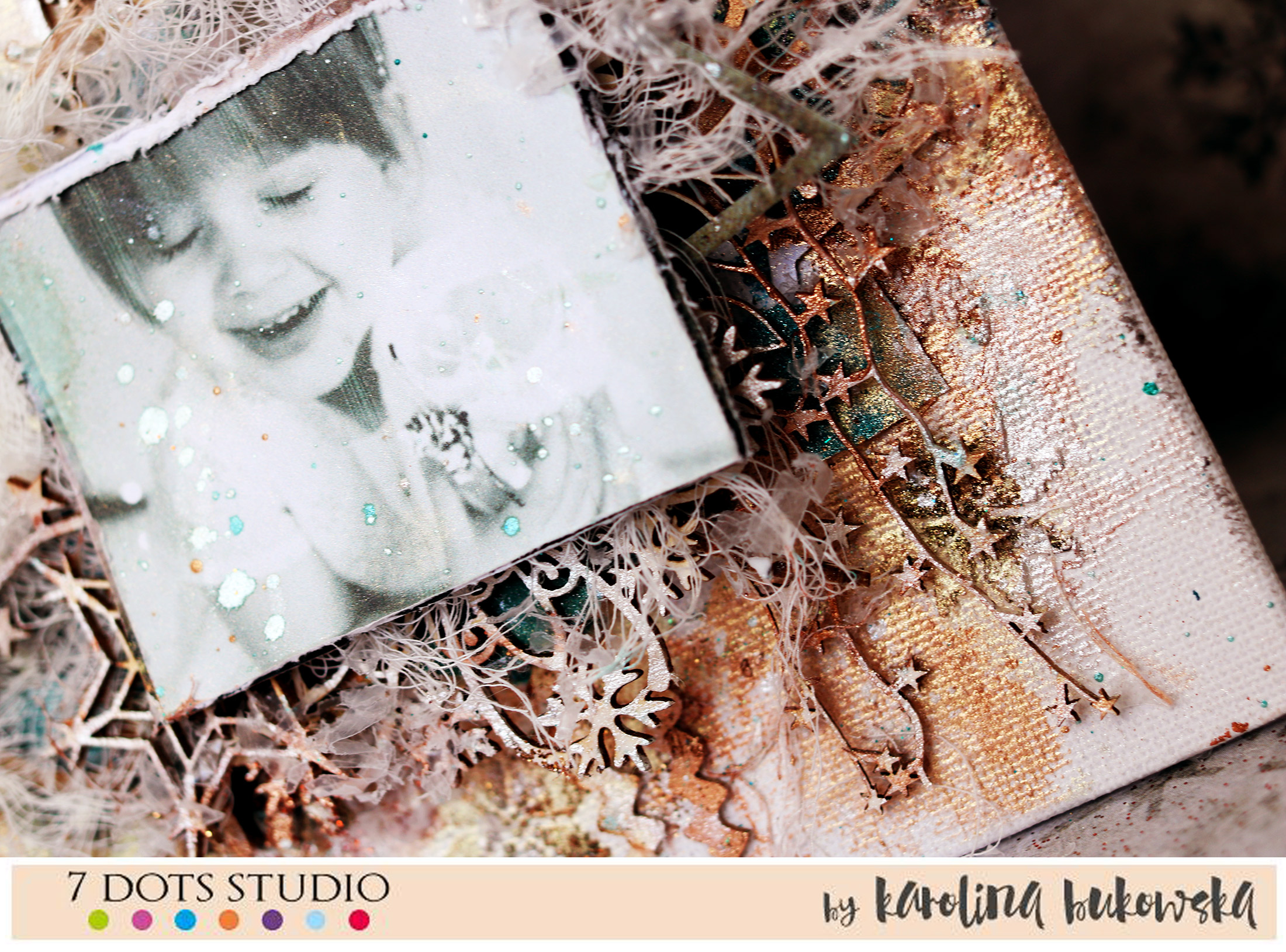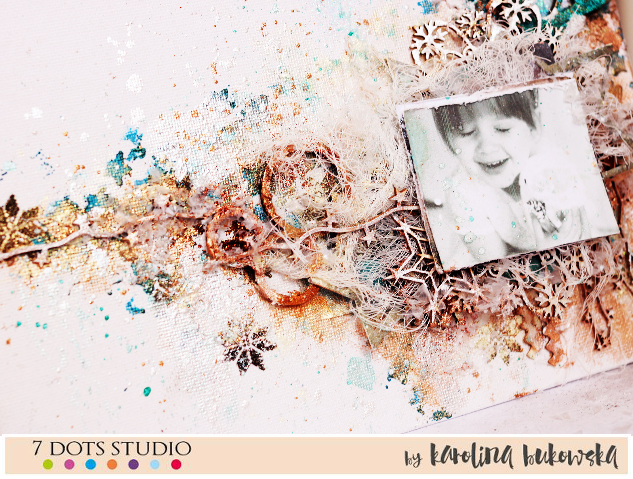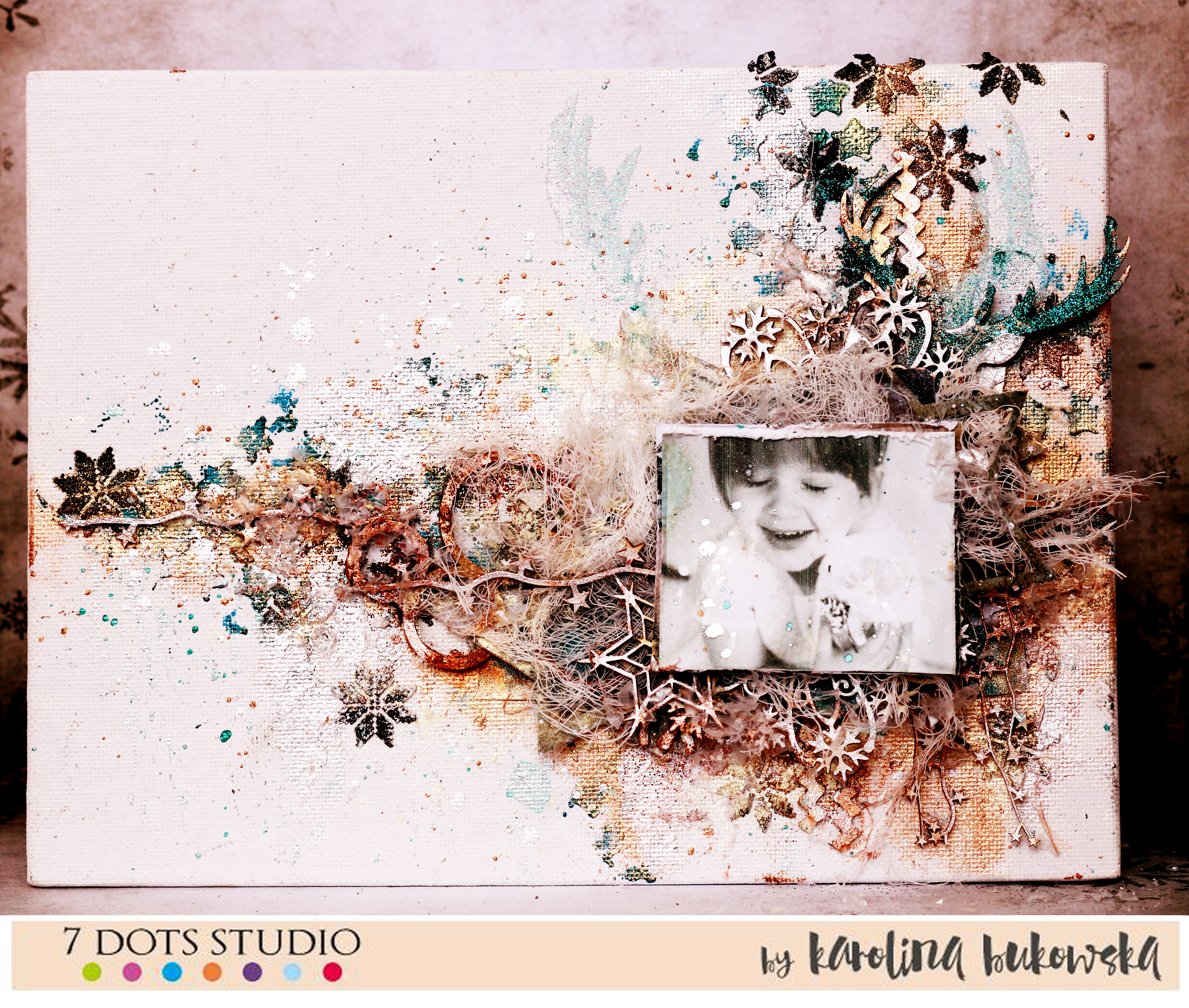 I love making Christmas decorations. I often do them in different styles. Today, I created snow canvas. I used the gorgeous Northern Lights line. I love this collection. I have emphasized everything with Finnabair products.