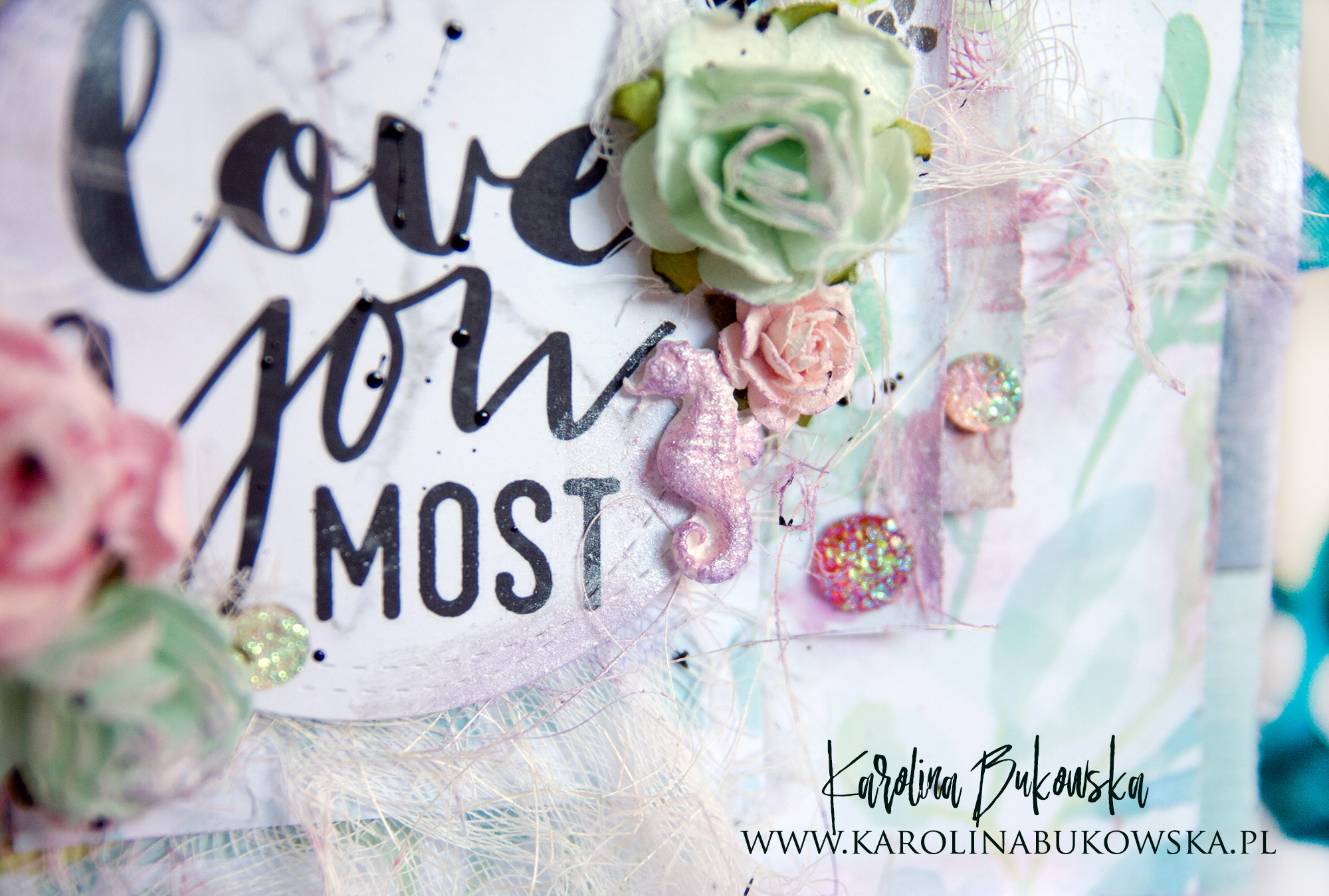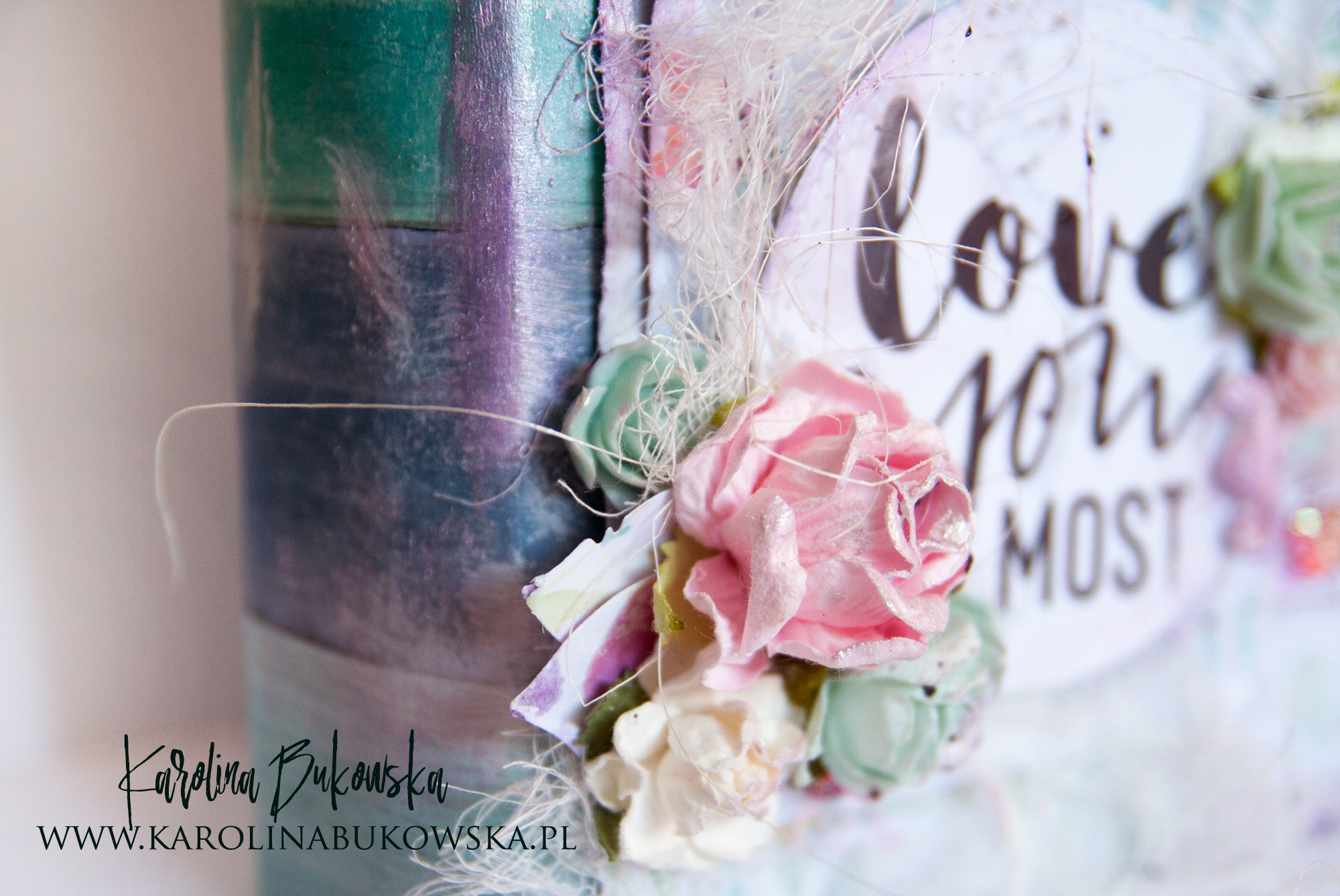 Do przetarć użyłamFinnabair – Art Basics- Heavy Gesso i past satynowych: perłowa,czaroit,